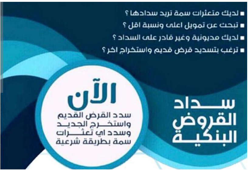 تسديد قروض واستخراج قرض شخصي او عقاري او شركه نساعدك في تخطي أزماتك المالية وجميع تعثراتك المالية قطاع حكومي وعسكري.